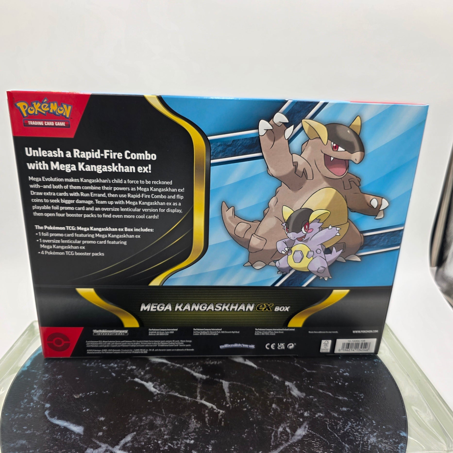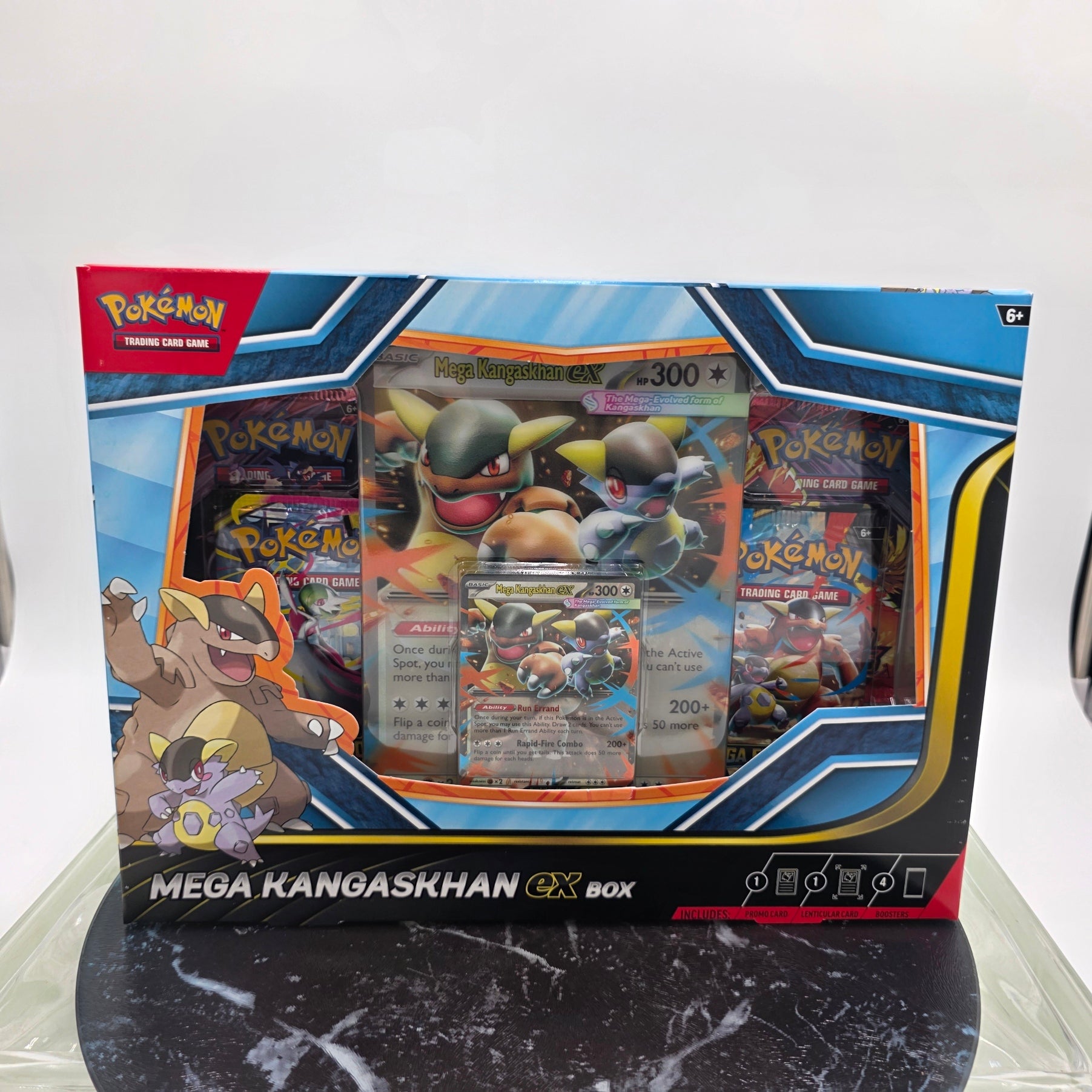 The Pokémon TCG: Mega Kangaskhan ex Box includes: